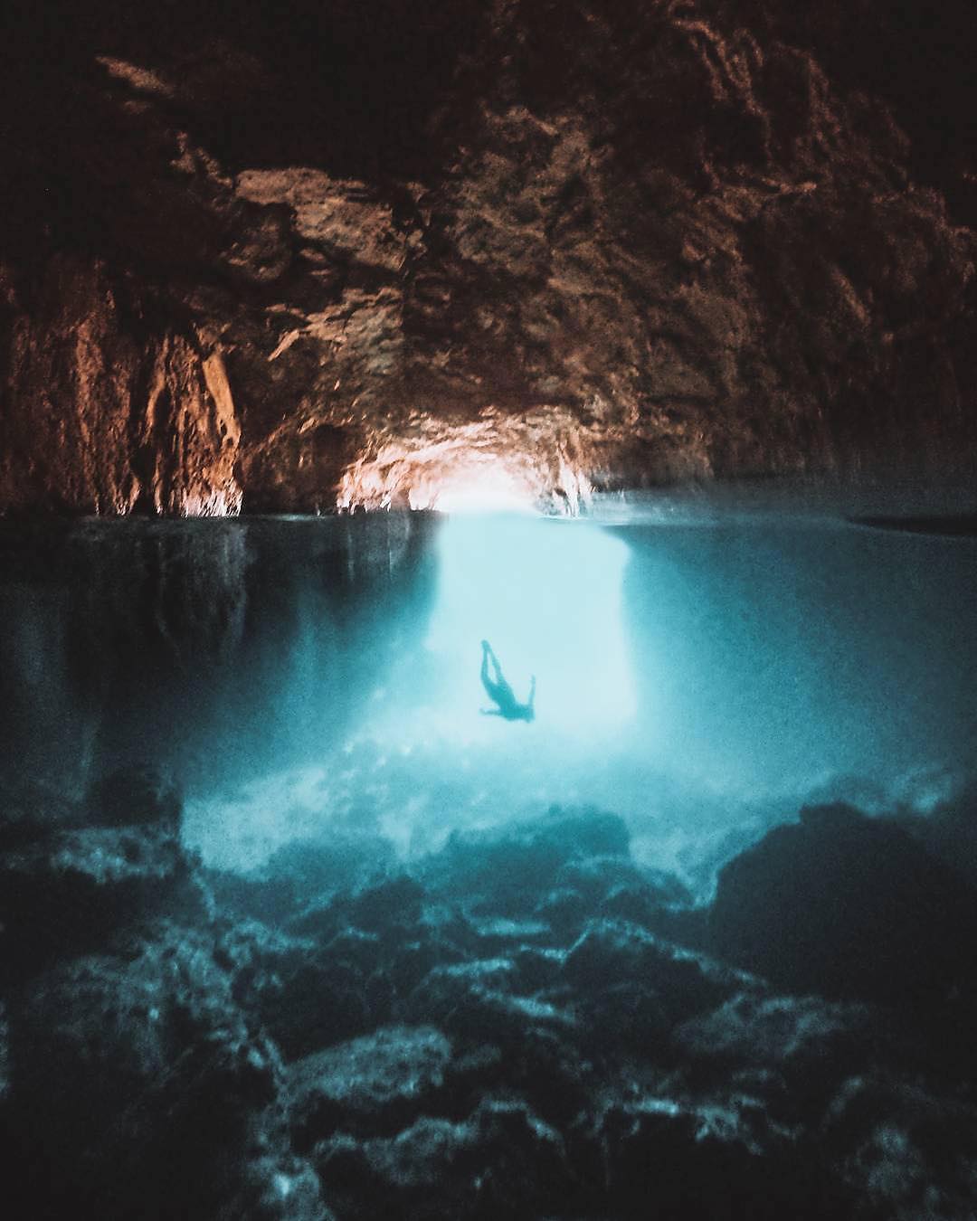 #土曜日の小旅行 — 今週はフランス南部のカランク国立公園に小旅行。Nicolas Gaillard (@nicolas_gaillard) さんは、地中海沿岸の洞窟で撮影した写真を見返していた時、思いがけないサプライズに息を呑んだ。「水中の人物は全く見ず知らずの人です。そこに人がいたなんて気づきませんでした。特別な機材なしでこんな写真ができたなんて奇跡的だと思っています」🏊