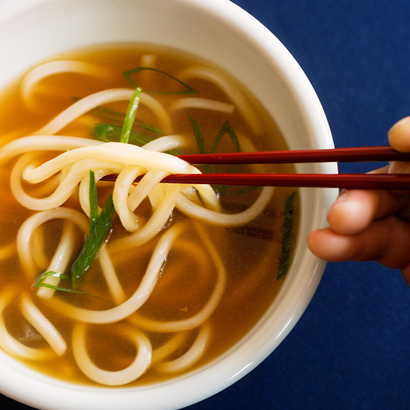 2)冷凍うどんを茹でて器に盛り、1)、温めておいたぼっかけ、青ねぎ、かまぼこの順にのせ、お好みで七味唐辛子をふっていただきます。