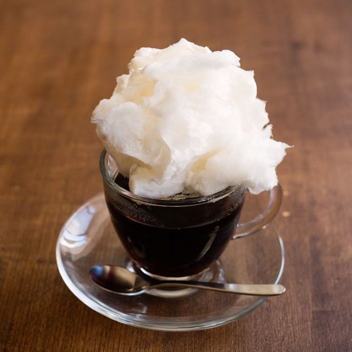 コツはコーヒーに綿あめが浸らないようにふわふわにほぐすこと。