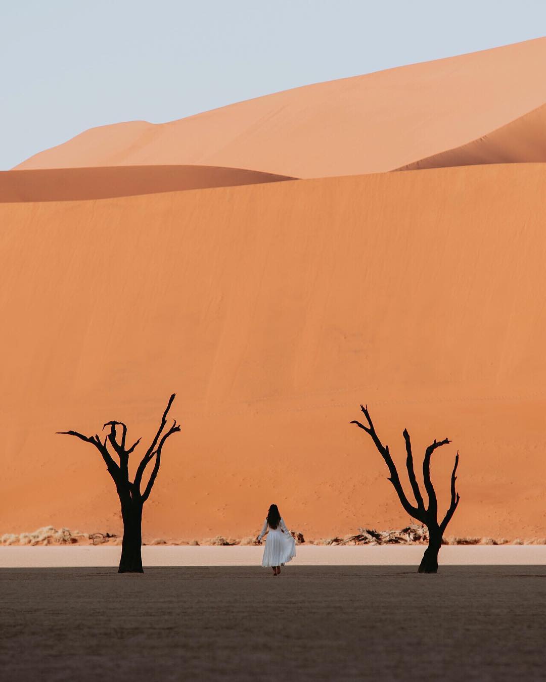 Initially we visited Deadvlei in the evening, but when we realized the morning shadows would silhouette the trees we knew we had to come back. We arrived early and waited for the sun to come up and position the shadows at the perfect spot. The tree skeletons that stand in the clay pan among the dunes are hundreds of years old. It is a truly surreal place, and the unique shadows caused by the towering dunes only add to the other-worldly feel. —