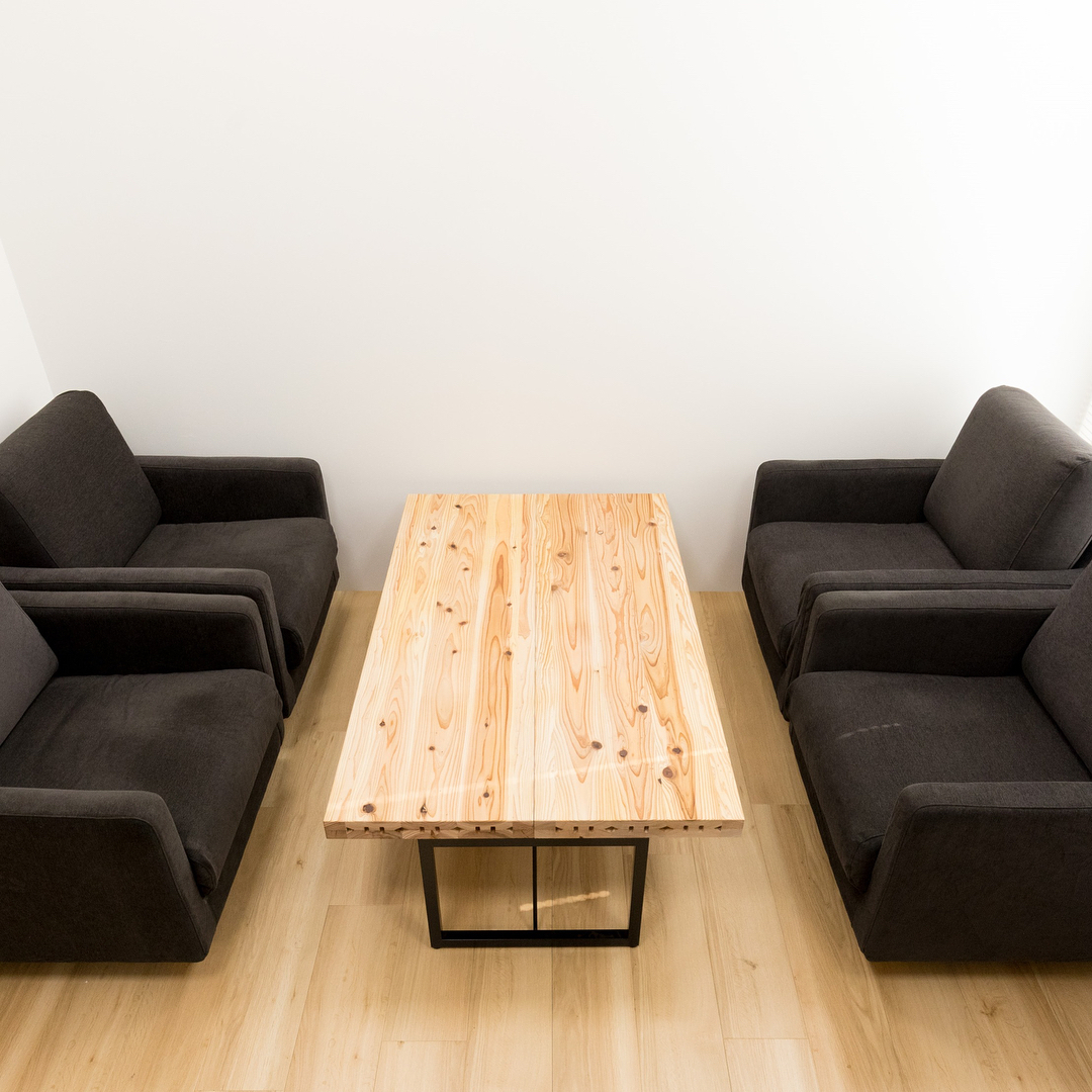 プランニングではシェルフ・デスク・カウンターなど全ての家具を杉の家具に統一した事で、木の香りで癒しの空間にすることができました。フリースペースには共有の情報やお菓子を置くことで、自然と会話が生まれる場所に。天板にオイルを塗りこむ作業も一緒に行ったことで、愛着を持って使っていただけていると思います。ご依頼に対して提案をしたというより、より良いオフィスを作るために一緒に考えてつくるという感覚で進めることができ、担当としてもお客さまとしても楽しく仕事ができました。