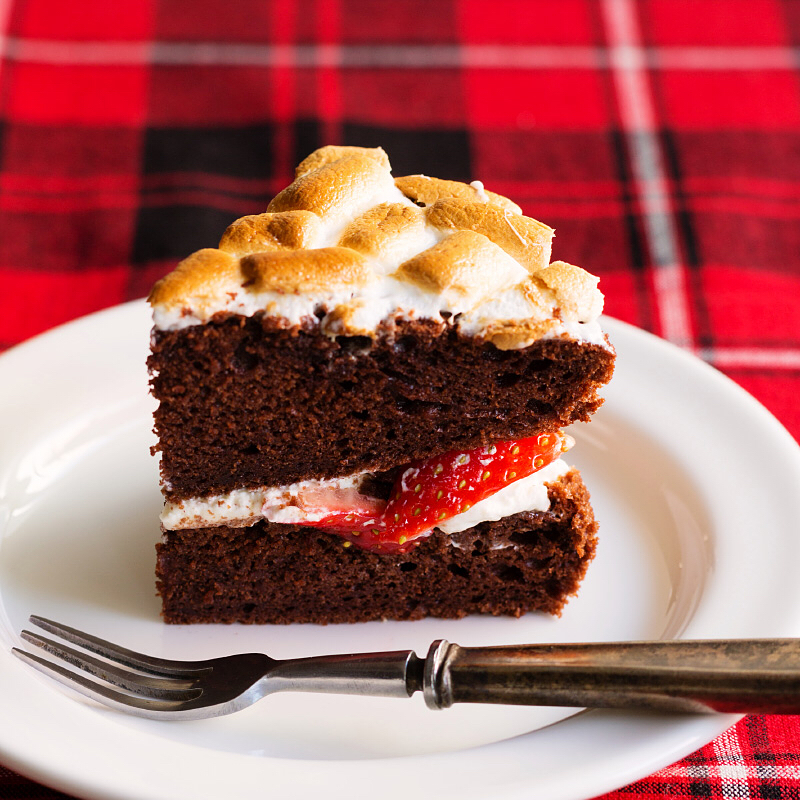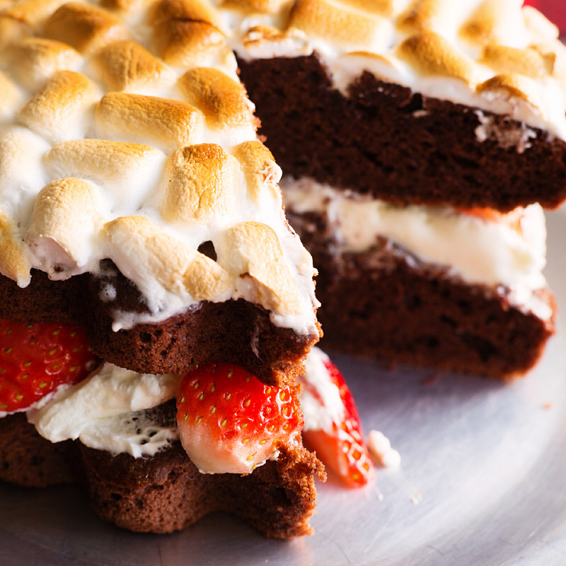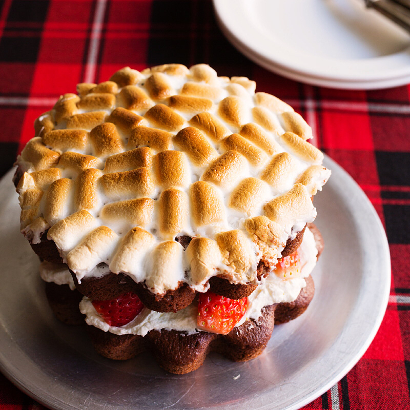 焼き色のついたマシュマロはキャラメルのように香ばしい。自宅で祝うバレンタインにピッタリなケーキです。