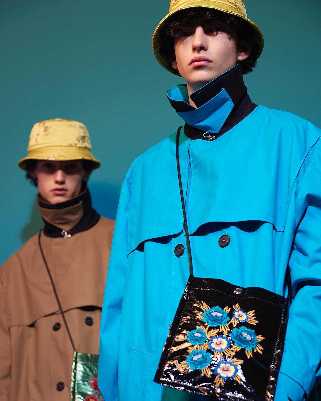 Men’s Fall/Winter 2018 collection features waxed cotton trenches in traditional colors and a pop of turquoise. Visit Kenzo.com to see all the looks 📸 @priscilliasaada #KENZOFW18
