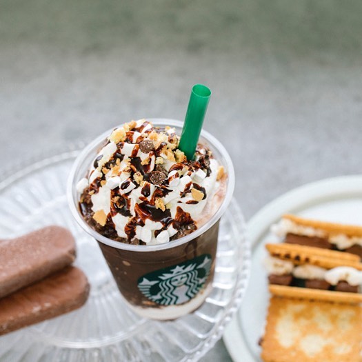 ビターですっきりとした口あたりのスモアフラペチーノ-クリスピー マシュマロ- が本日 #スモアの日 (8/10)に新登場🍫