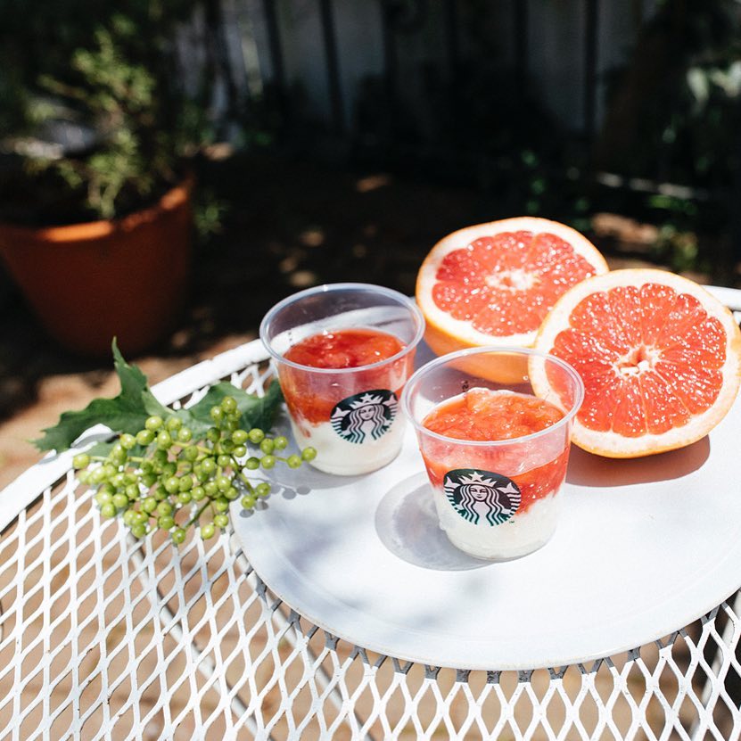 新しくなったヨーグルトで爽やかな朝🕊💚 #フルーツアンドヨーグルトルビーグレープフルーツ #e朝 #朝フルーツ #スターバックス