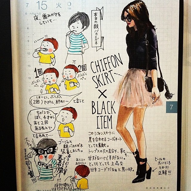 日々の出来事を題材にしたイラストのほか、彼女が決まって描くのは、趣味のファッション画。彼女にとって、日常の記録を記す絵日記は、デッサンの練習や思いついた新しいコーディネートを自由に再現できる場でもある。「ファッションについては、自分の好きなスタイルを描く、かっこいいと思ったスタイルを描く、そして流行りに流されない、という点にこだわってます。」 oookickoooさんがシェアする絵日記をもっと観るには、 @oookickooo をフォロー。