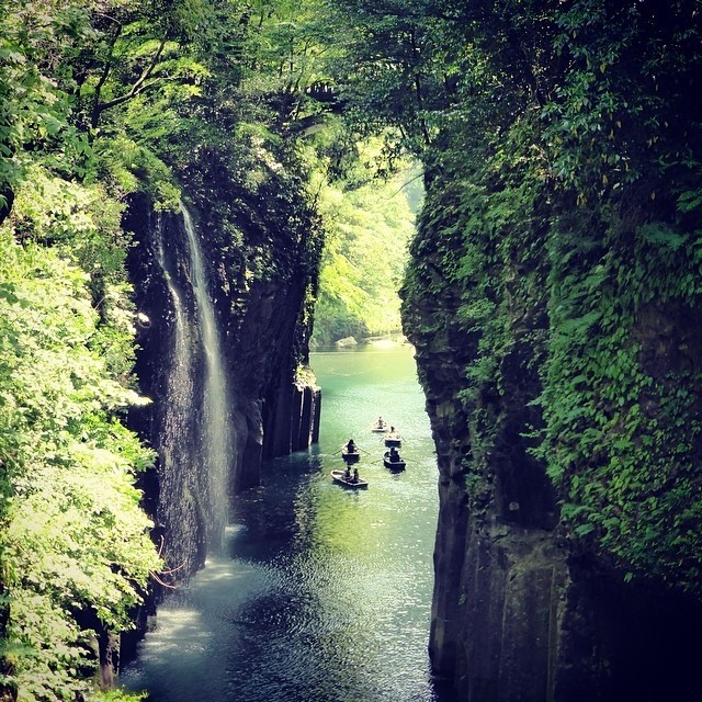 宮崎県西臼杵郡高千穂町にある峡谷で、国の名勝・天然記念物に指定されている高千穂峡。この柱状節理の谷は、何万年も昔、阿蘇火山活動によって噴出した火砕流が五ヶ瀬川沿いに流れ、その後急激に冷却されたことで形成された。高さ最大100メートルの断崖がそびえ立つ約7キロの峡谷内は、真名井の滝などの自然アトラクションが見られるほか、遊覧ボートや橋からの眺めを楽しむことができ、その様子はInstagramでもシェアされています。