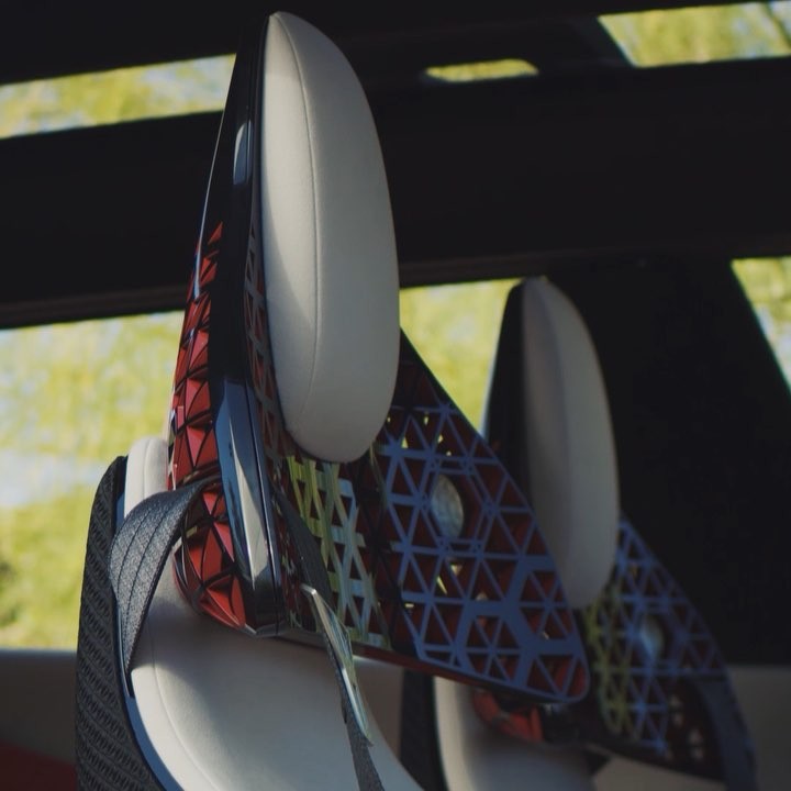 The headrest design in the #Nissan #Xmotion was inspired by kumiko woodwork, allowing rear-seat passengers to enjoy layers of various patterns as they look at the headrest from different angles. #IntelligentMobility