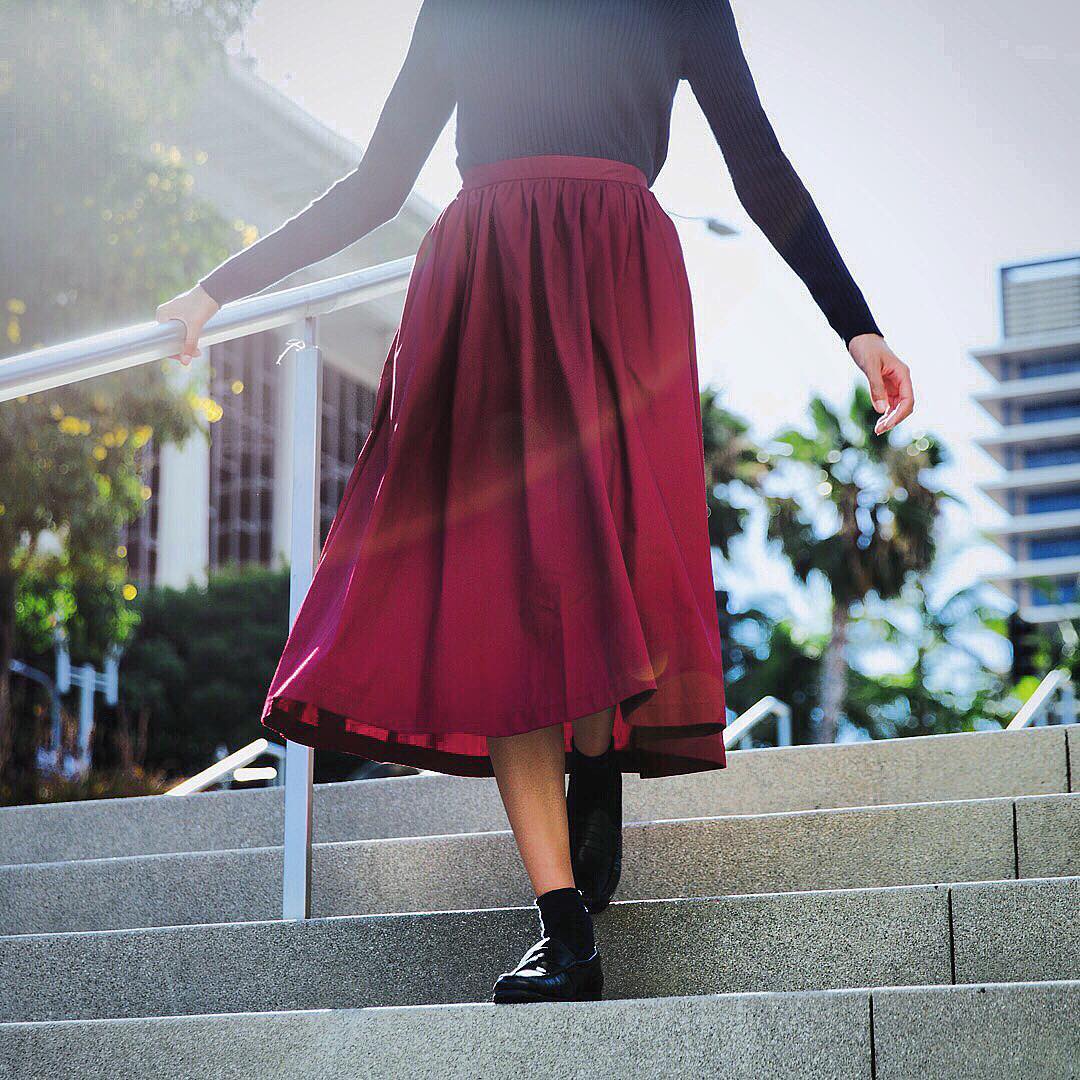 Add a bit of flare to your fall wardrobe with our High Waist Cotton Volume Skirt.