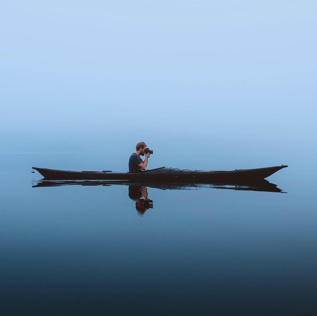 “This summer, out late in the day when the lake quiets down and the light is soft. It’s been a while since I posted a photo of myself so here I am, putting the ISO range of the Canon EOS-1D X Mark II to the test. And luckily not its waterproofing… For those of you who’ve asked how I bring my camera on a kayak, I usually bring a small dry bag that I keep between my legs✨. Pic by @julian_pircher” – @alexstrohl