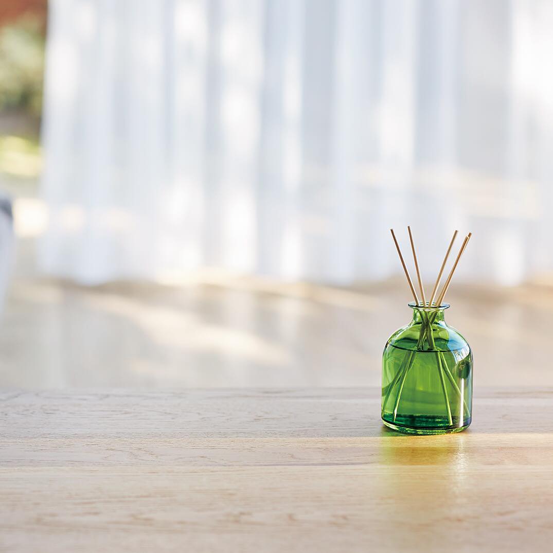 そのままスティックを挿すだけで香りが広がるインテリアフレグランス。夏らしいシトラス系など、使い場所に合わせてお選びいただけます。
