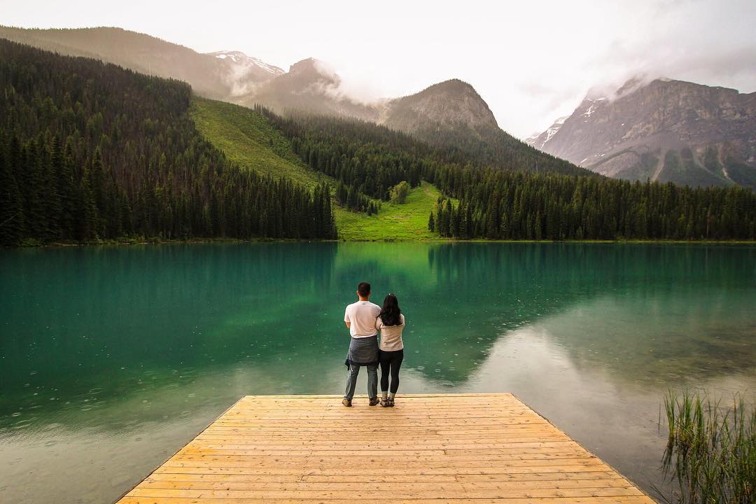 “This is one of my favorite photos of us because it’s perfectly imperfect. We were hoping for a bright sunny day, but instead it had poured rain. The rain finally subsided when we arrived at Emerald Lake, but Eric somehow ripped his jeans at the inseam as he was getting out of the car (hence the hoodie around his waist). I was setting up my camera for a shot of us in front of what was a clear and still reflection, but the rain started to pick up again. And yet, despite all the unexpected, we left smiling. So happy we decided to focus our travels on exploring national parks because now I get to see and appreciate the world’s most beautiful places, rain or shine, with my best friend.” #MyCanonStory