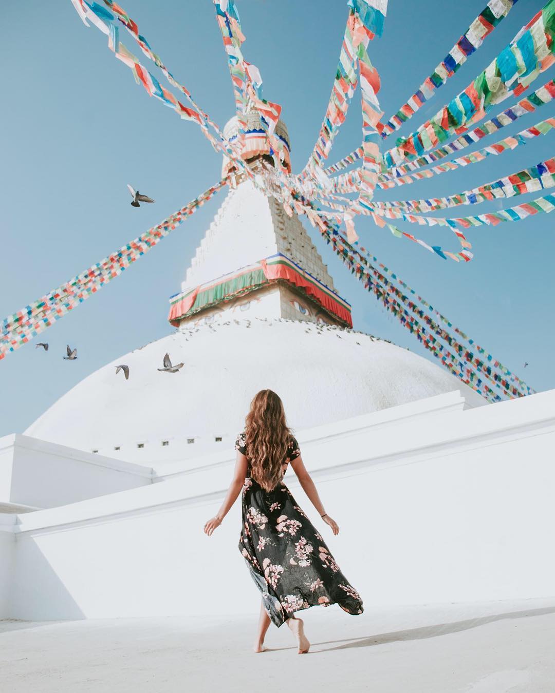 “Kathmandu was one of the most overwhelming and visual cities I’ve ever been to. Dust, music, marigolds. From an open window, the smell of incense mixes into the chaotic city streets. Outside of this Buddhist stupa hundreds of people walk clockwise spinning prayer wheels for good luck.