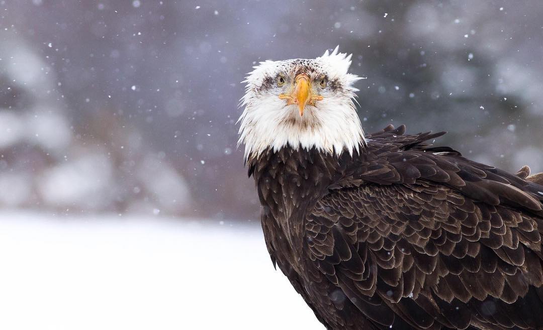 “A sub-adult bald eagle pauses while feeding on a deer carcass in central #NewYork state. The falling #snow and that powerful, unforgettable stare of the eagle made for an incomparable combination on a cold February morning.” #MyCanonStory