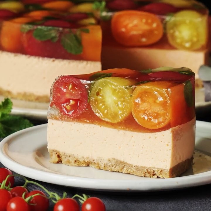 【カラフルかわいい】水玉トマトのレアチーズケーキ🍅⠀⠀