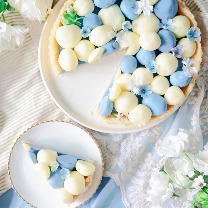 【まさかのブタ登場】ブルーのトリュフチョコタルト💙⠀