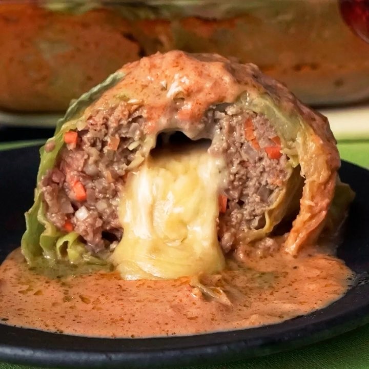 【溢れるチーズイン🧀】焼きロールキャベツのトマトクリームソース🍅⠀