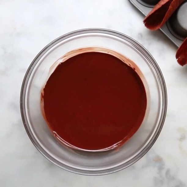 6.チョコレートソースを作る。ボウルにチョコレート、ココナッツオイルを入れ、600Wの電子レンジで2分30秒ほど加熱し、ツヤが出るまでよく混ぜる。