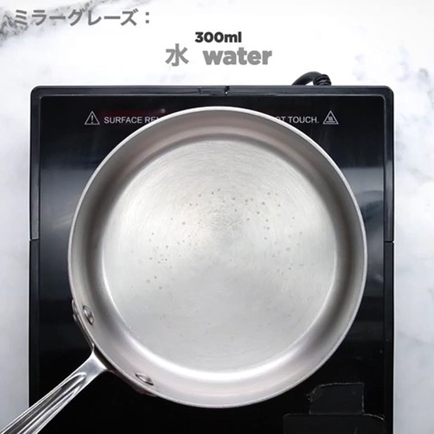 1. 鍋に水、砂糖、コンデンスミルクを入れ、中火にかけて混ぜ(約1分)、火から下ろす。