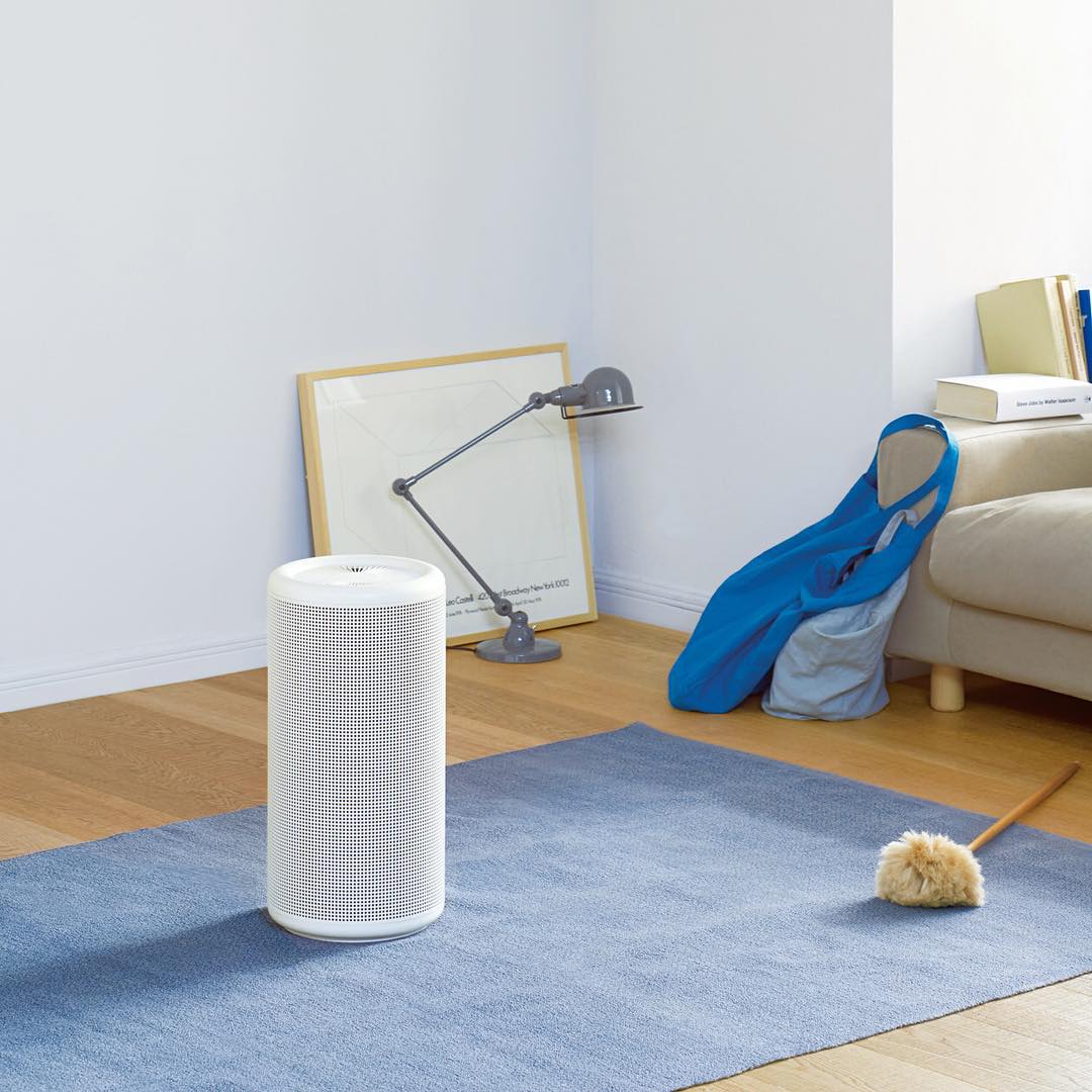 円柱形のデザインが特徴的な空気清浄機。「デュアルカウンターファン」と「360°集塵脱臭フィルター」で、部屋中の空気を動かし、浮遊物質をしっかり取り除きます。