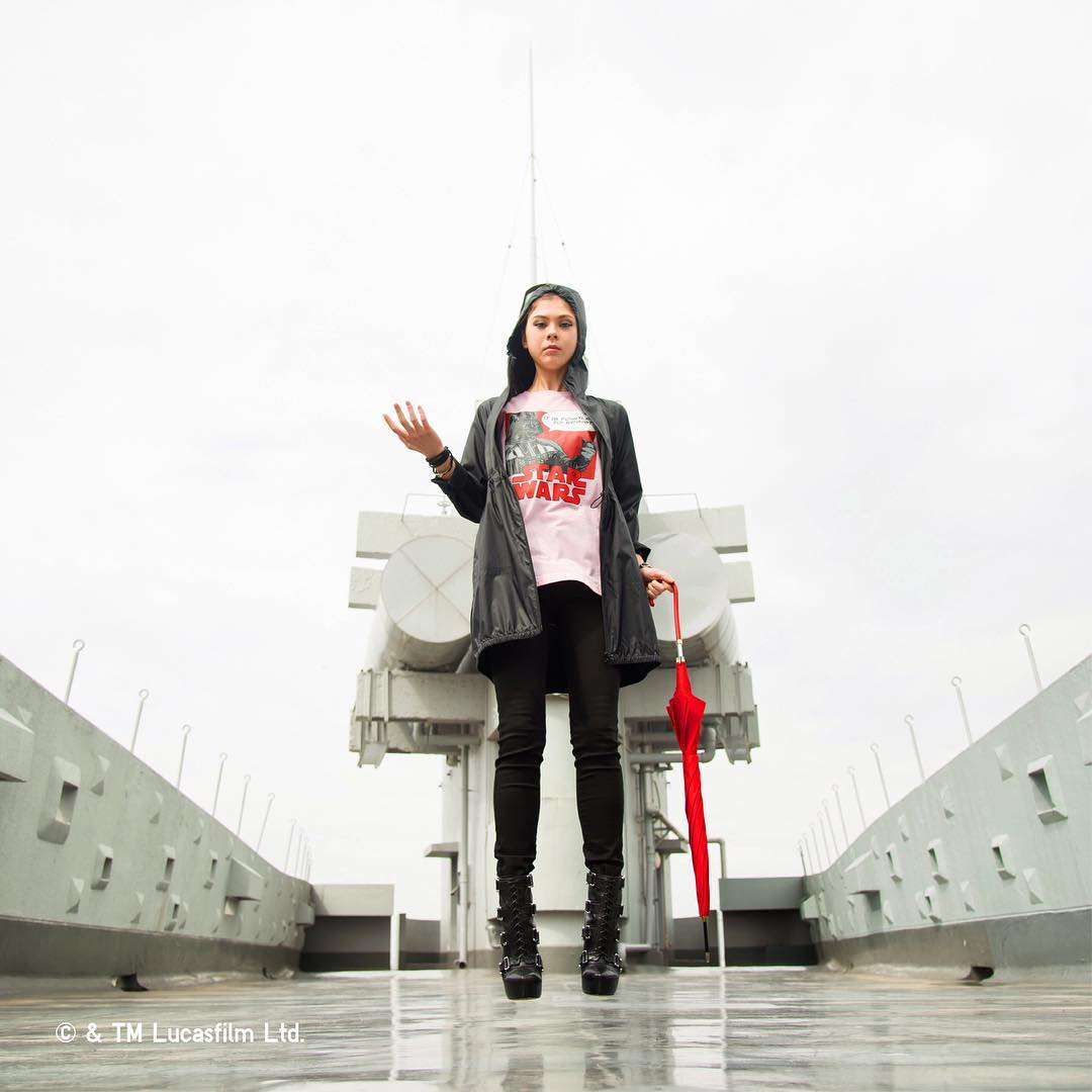 “I’m your father”あの名シーンがよみがえる「スター・ウォーズ」ダース・ベイダーのTシャツ。トレンドのヘルスゴスを意識してハードなアクセサリーやブーツを合わせました。ブラックxピンクのスタイリングはすぐに取り入れられそう!