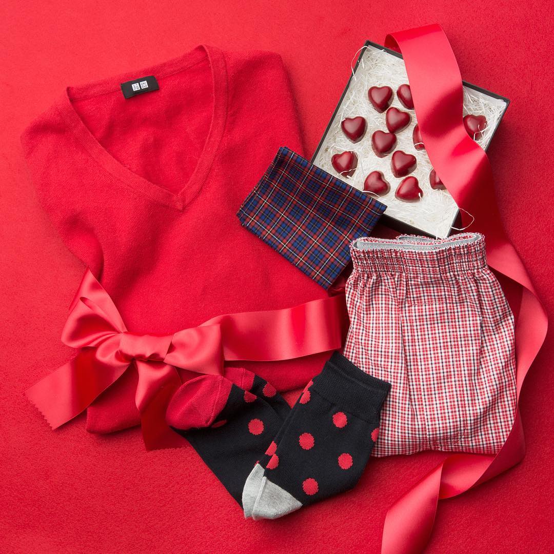 #valentine #gift #uniqlo #red #cottoncashmere #ユニクロ #バレンタイン #ギフト #赤 #コットンカシミヤ #uniqloflatlay