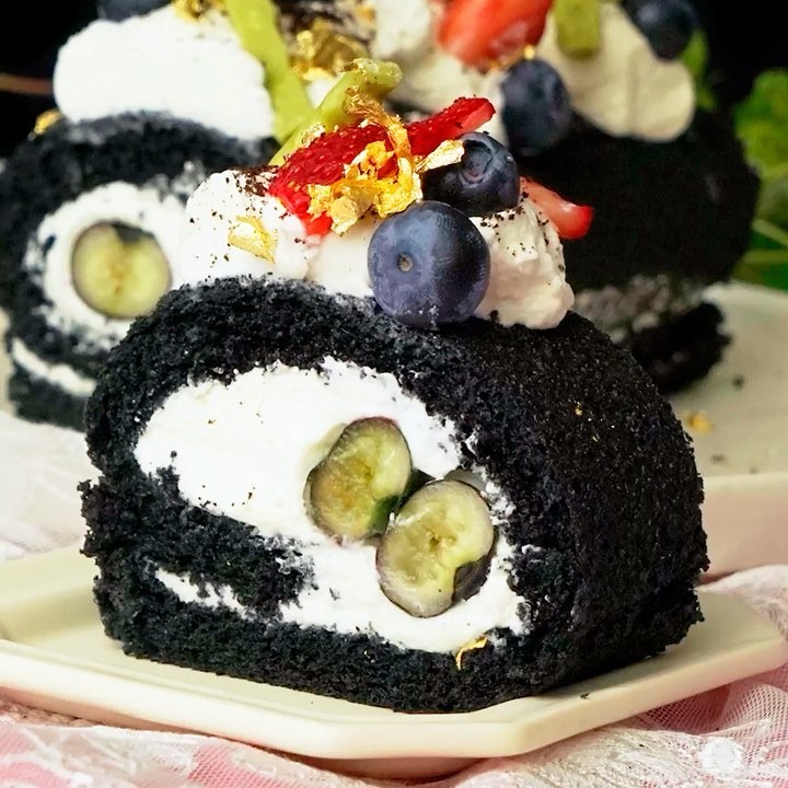 【ゴージャスにデコってね✨】黒ごまブルーベリーロール🖤⠀