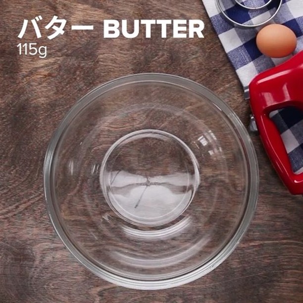5. ボウルにバターと砂糖を入れ、ハンドミキサーでなめらかになるまでよく混ぜる。