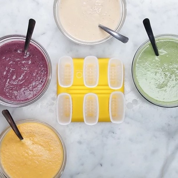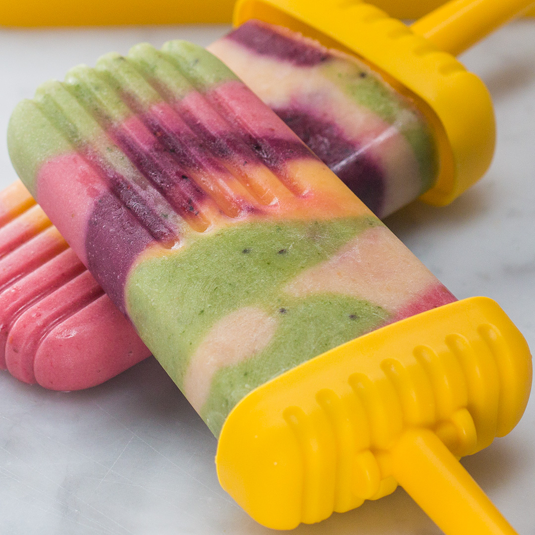 6. アイスキャンディー型に(1)〜(5)を大さじ1ずつランダムに入れる。ふちまで入れたら棒を差し、冷凍庫に入れて冷やし固めたら、完成!