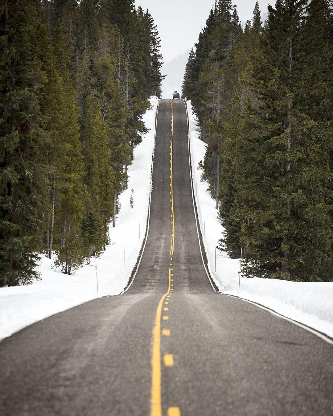 “A car drives a stretch of Highway 212 outside of Cooke City, #Montana.” #MyCanonStory