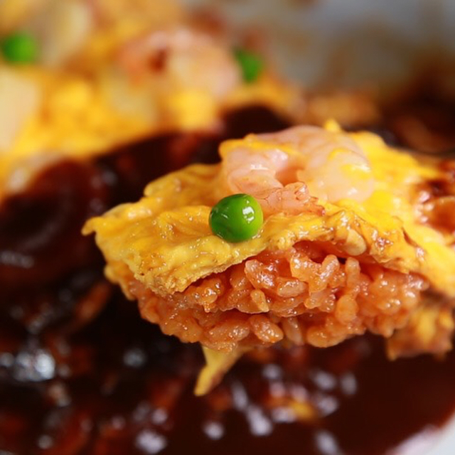 『グリル満天星』の「オムレツライス ドゥミグラス」は、ふわとろの花が咲くオムライスはビジュアルも最強!卵とコクのあるドゥミグラスが黄金比でまざりあう。