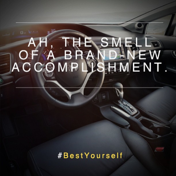@Honda @Honda: Ah, the smell of a brand-new accomplishment. #BestYourself… 2013-08-12 Ah, the smell of a brand-new accomplishment. #BestYourself Ciao, Nihon.