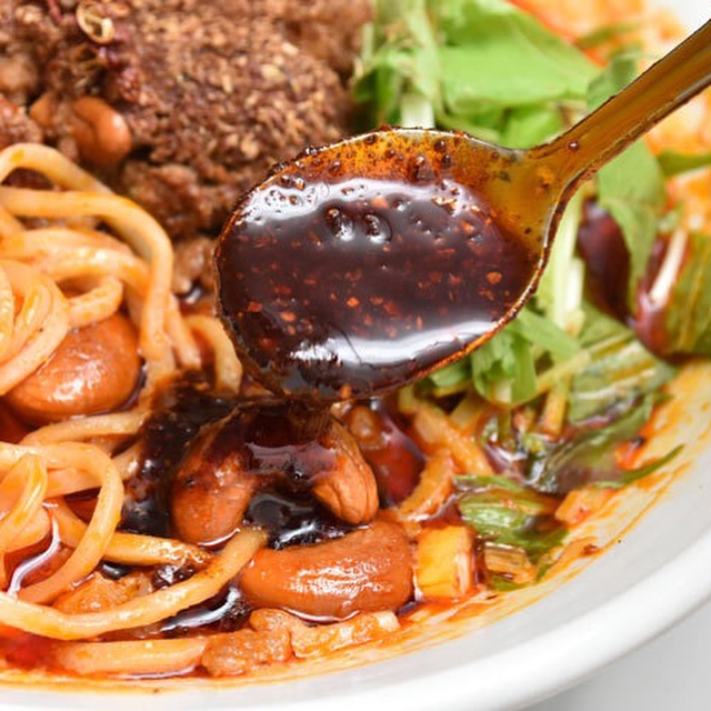 ウマ辛グルメで暑さを吹き飛ばしたい日は、『175°DENO担担麺』の「担担麺(汁なし)※シビれない」。シビれ具合は3種類から選択可。ランチ時は行列が目印。