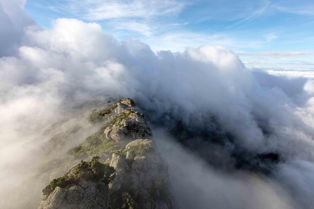 “Sunrise on Mt Longed in Tanzania. We found a bush-man to guide us and started at 2:00am. The trail was barely more than a whisper in the night, through a dense, climbing strait up with no zig-zags. We were socked in all night, but when we crested the summit ridge, this amazing window of rolling clouds opened up. Pillowy airstreams pushing over the lip of the cliff, and rushing over the edge in rivulets. All of the little moments of friction required to get there were put in proper perspective. Night hikes for mountain sunrises are the absolute best.” Photo by @tedhesser