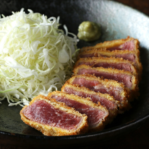 1. 牛肉に小麦粉をまぶして余分な粉ははらう。溶き卵にくぐらせ、パン粉をまぶす。190℃のに熱した揚げ油にそっと入れて、約50秒、きつね色になるまで揚げる。食べやすい大きさに切り分ける。
