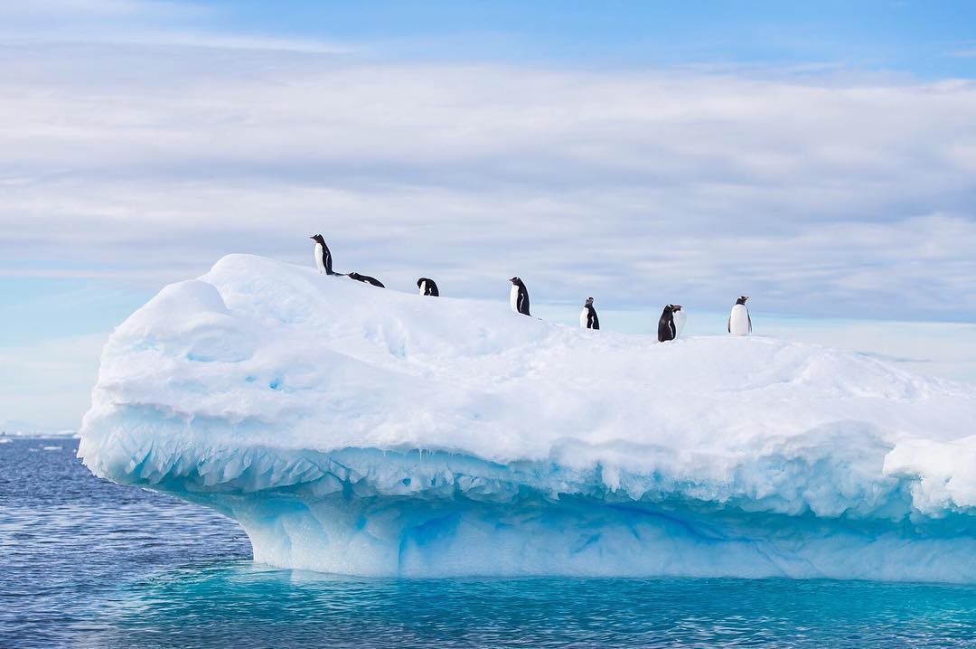 A photo from Mike Theiss @extremenature working his way across the infamous Drake Passage photographing gentoo penguins hanging out on an iceberg in Antarctica.