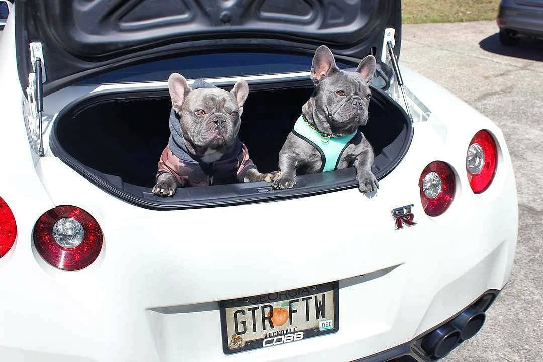 🐶🐶 Bring your favorite pets to car meets for #NationalPetDay! 🐶🐶 #Dogs #FrenchBullDog #OMGTR #GTR #R35 📷@stitch_and_nala