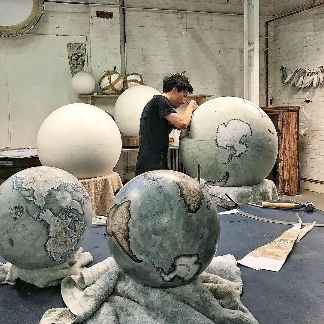 ハンドメイドの地球儀を作り続けている世界有数の会社、Bellerby & Co. Globemakers (@globemakers) 。完璧な球体作りから、地図のデザイン、色付けする作業まで、ひとつひとつ丁寧に仕上げる。創立者のPeter Bellerbyさんは、父の80歳の誕生日を祝うため地球儀の作り方を学んだ。それがきっかけとなり、2008年に自宅のリビングではじまった会社が、今では20 人の製図家、木工師、イラストレーター、彫刻師や画家を抱えるまでに成長した。「全て特注で作っていて、この世に同じものは二つとして存在しません」と説明するのはPeterさんと長年公私を共にしてきたJade Fensterさん。地球儀のサイズは直径 23cm~127cmの中からオーダーすることができる。完成まで数ヶ月かかるものもあるが、待つ時間も楽しみのうち。「自分のためだけに作られた地球儀を買えるのは、貴重な体験です。いつまでも世界でたったひとつのものであり続けるはずですよ」🌍 Bellerby & Co. Globemakers (@globemakers) のアトリエの様子は、本日 @instagramjapan のストーリーズからご覧いただけます。