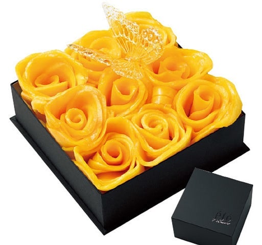 『été』の特別感溢れるフルオーダーメイドスイーツ「フルール・ド・エテ エテ」。箱を開けるとフレッシュなマンゴーがバラのように咲き誇り、底にはタルトとカスタードクリームが隠れている。