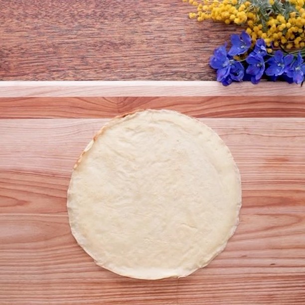 3. フライパンにバター(分量外)を熱し、(2)をお玉1杯分流し入れて、薄く広げて焼く。