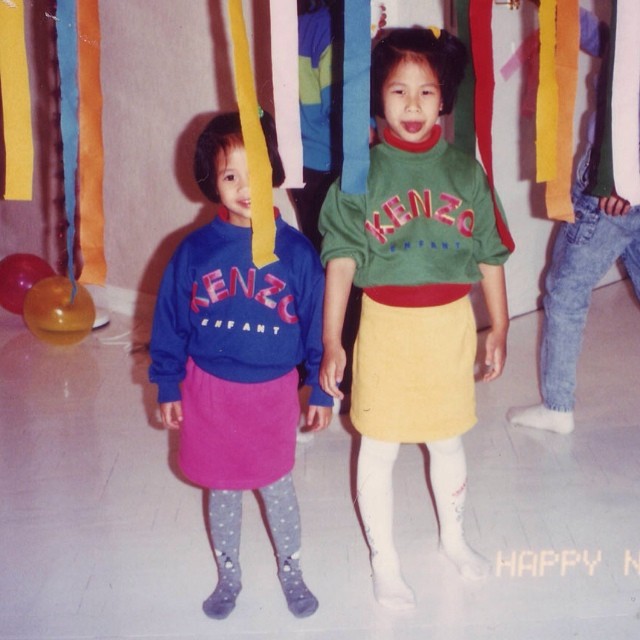 It´s a #kenzotbt today with our friend @superwowomg & sister @shalai wearing matching @kenzo kids logo sweatshirts back on NYE 1994! Love it!!! 👍💙💚👭😻 Got great KENZO archive pics too? Tag them #kenzotbt!