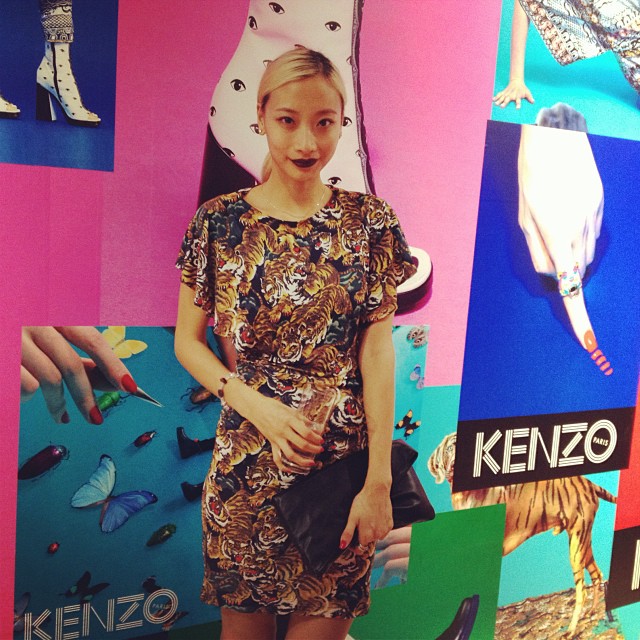 The lovely @cindiddy is wearing #kenzofw13 Flying Tiger tonight! 🐯