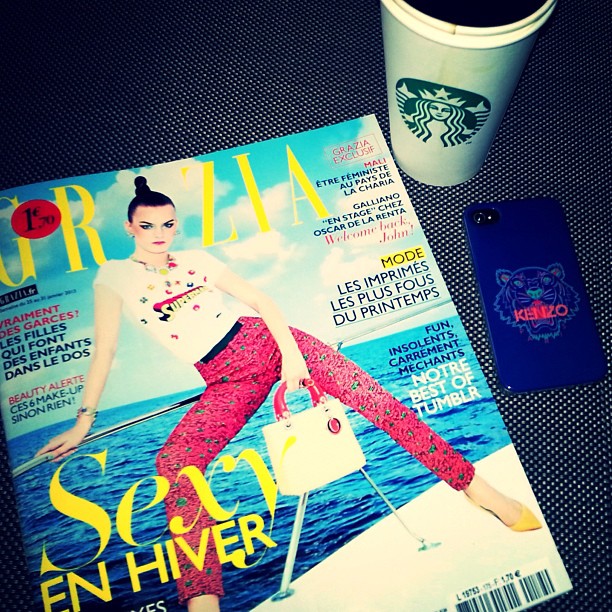 Our Resort print pants on the cover of French Grazia and a fresh cup of Starbucks coffee make a happy KENZO sunday 🙂