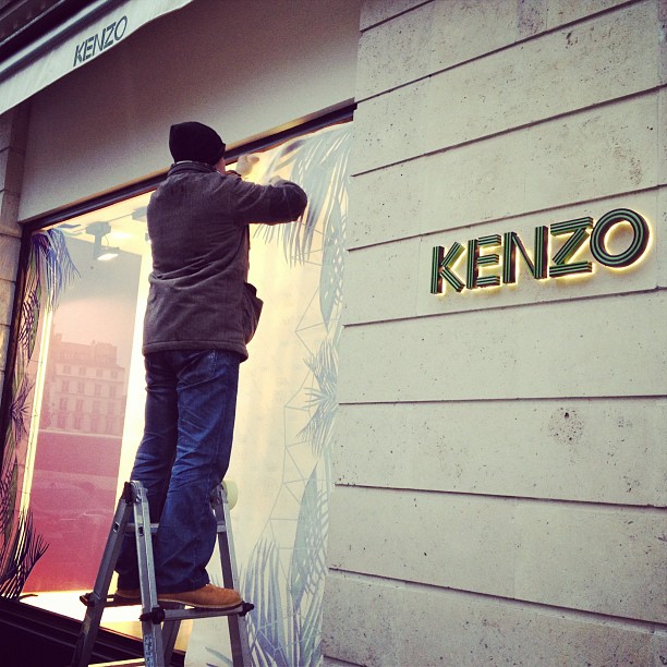 @KENZO @KENZO: Snowstorm still going strong in Paris… We are setting up the new windows at ou… 2013-01-15 Snowstorm still going strong in Paris… We are setting up the new windows at our Rue de Rennes store today Ciao, Nihon.