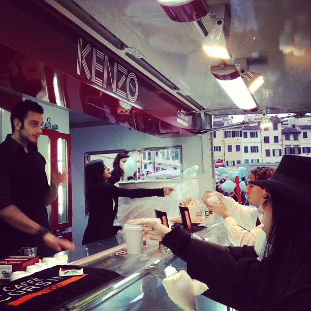 Outside the #kenzofw13 show, the @caffecorsini stand is warming up our guests