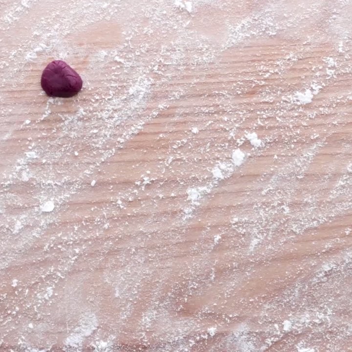 5. 台に打ち粉をし、二色の生地をバランスを見ながらちぎって並べる。打ち粉をした麺棒で厚さ5mmにのばして型抜きする(生地がやわらかくなっていたら、型抜きをする前にラップをかけて冷蔵庫に入れて冷やす)。