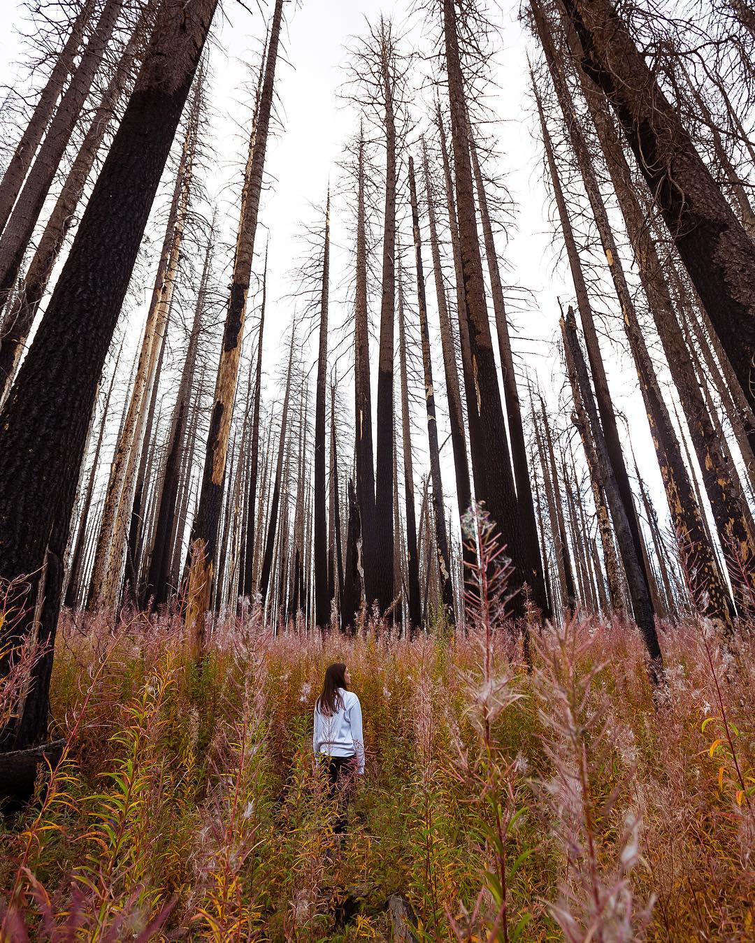 @jhamil_bader here with another image for my takeover! This image encapsulates two of the most valuable techniques I’ve learned in photography. The first is to always change my perspective in order to create a sense of grandeur and create narrative within an image. The second is to push myself to capture unusual beauty in nature and always be aware of possible photo moments that occur in the least expected places. This photo was taken near the beginning of a hike to a waterfall in Central Oregon and ended up becoming one of my favorite images I captured this year. The contrast of the burned forest against the bright fireweed creates a magical scene that is completely unique. The incorporation of human elements brings both scale and narrative to the scene, and makes the photo come to life!
