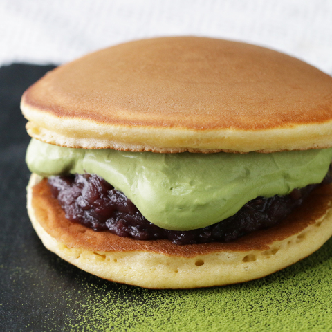 6. どら焼きの皮を2枚1組にし、つぶあんこと抹茶クリームを挟んだら、完成!