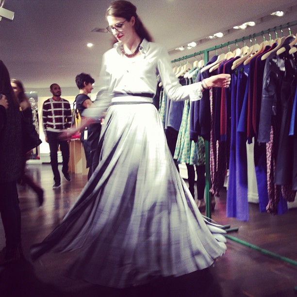 In-store twirling in THAT b&w marble pleated skirt #psychicparty #kenzofw12