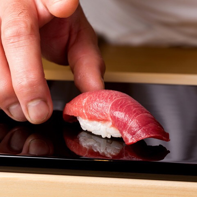 表参道・青山エリアの鮨と言えば必ず名が挙がる『鮨 ます田』。握りは、ネタの重みをたった今感じたかのようにふわりと重心を下げていく。